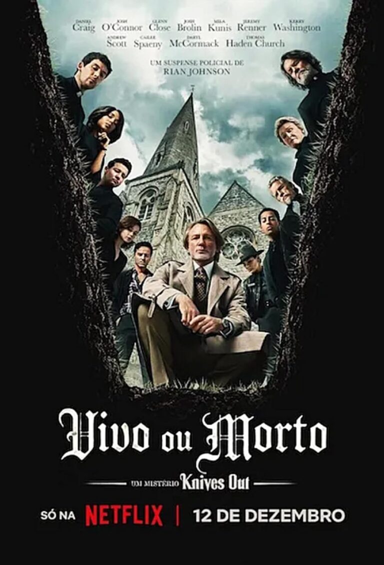 - No filme só aparece o título “Vivo ou Morto” sem referência à franquia “Knives Out” porque o diretor nunca gostou dessa conexão.